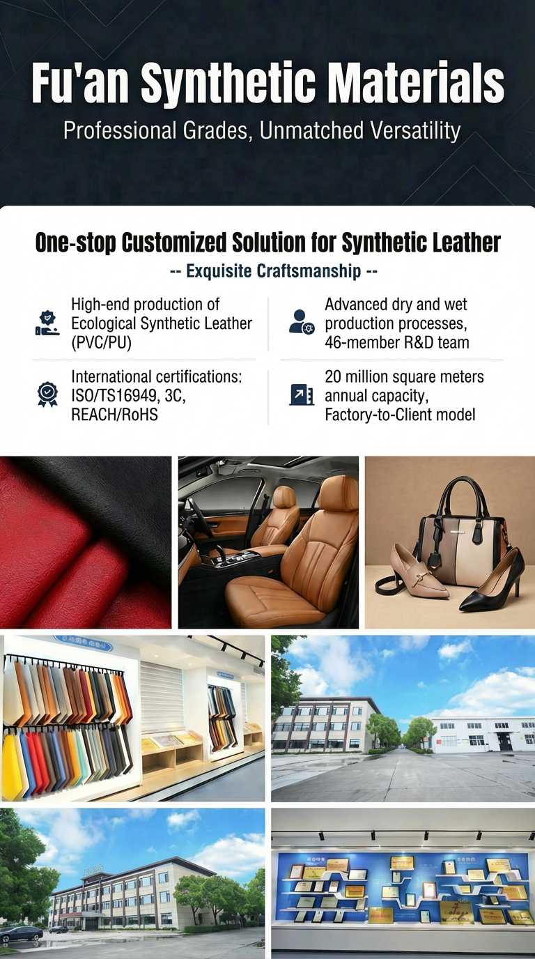 Companies focus on light plastic manufacturing, specializing in the production of ecological synthetic leather and artificial leather, annual production capacity of 20 million square meters.Products cover car upholstery leather, garment leather, decorative leather, shoe leather, luggage leather, etc. More than 100 varieties.The core products "ecological synthetic leather" and "environmental decoration leather" (Jiangsu Province high-tech products, famous brand products, domestic initiative), widely used in automotive interior, high-end decoration, bags, shoes and clothing, transportation (large aircraft/high-speed rail interior) and sports goods and other fields.The market covers 17 provinces/cities/autonomous regions in 58 prefecture-level cities, and is exported to Europe, the United States, Japan, Korea, Southeast Asia and Hong Kong and Taiwan.Exports about 70 million yuan RMB (including export southeast Asia, 20 million yuan and middlemen manufacturers indirect export 50 million yuan).